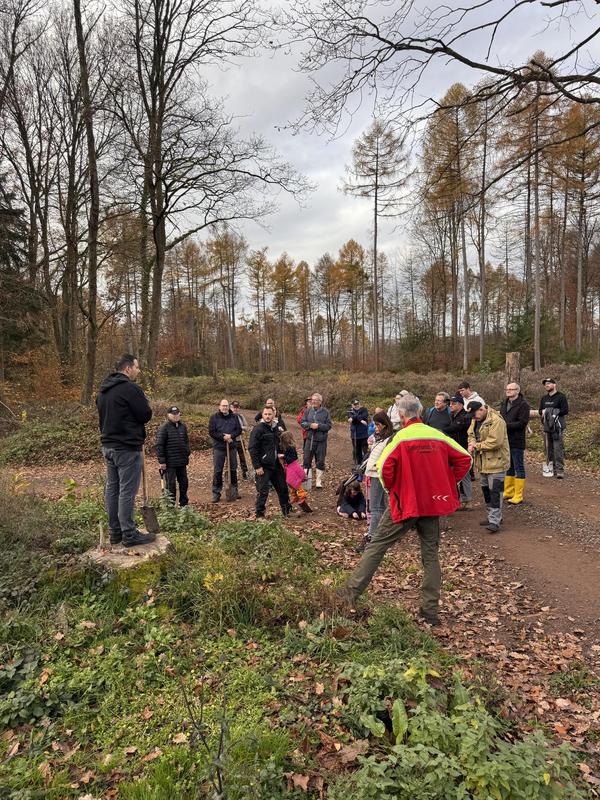 Die Wahl fiel bewusst auf diese Baumart: Sie gilt als robust, klimaresilient und trägt langfristig zu einem stabilen, widerstandsfähigen Mischwald bei. Unter der fachkundigen Anleitung des Revierförsters wurden die Setzlinge sorgfältig in den Waldboden gebracht und direkt mit Schutzmaßnahmen versehen, um ihnen den bestmöglichen Start zu ermöglichen.