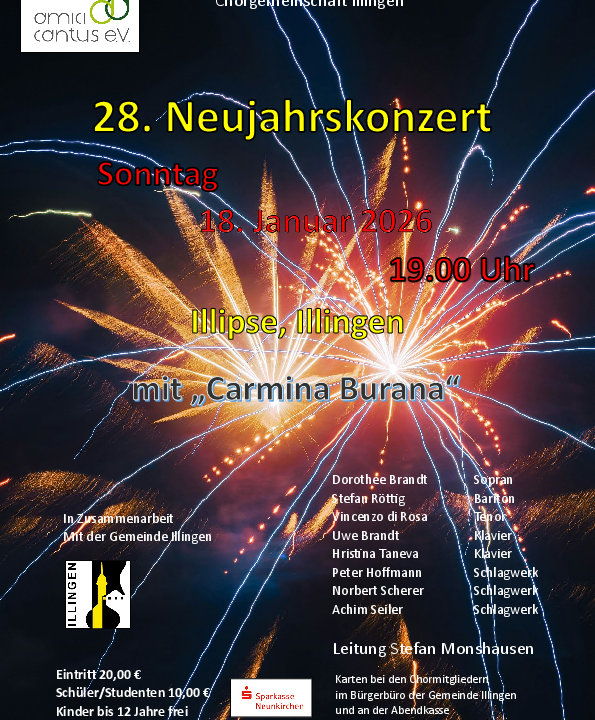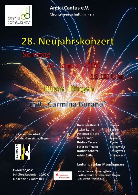 Amici Cantus lädt in Kooperation mit der Gemeinde Illingen zu einem festlichen und klangvollen Start in das neue Jahr ein. Das Ensemble gestaltet gemeinsam mit ausgewählten Künstlerinnen und Künstlern einen Konzertabend, der musikalische Exzellenz mit einer berührenden Atmosphäre verbindet.